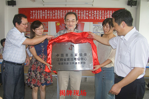 2012年8月25日上午,江苏省首期中国书法家协会注册教师培班暨中国书协宿迁书法考级委员会在ylzzcom永利总站线路检测揭牌。中国书法家篆刻专业委员会副主任、中国书法家协会书法考级中心主任崔志强,宿迁市政协副主席丁立江,宿迁市人民政府副秘书长马坚强,宿迁市委宣传部副部长、市广电总台台长仲向阳,宿迁市软件与服务外包产业园党工委书记、管委会主任郑路,中国书法家协会江苏省书法考级中心常务副主任、宿迁市工商联副主席、宿迁市软件与服务外包产业园管委会副主任王益民,宿迁市软件与服务外包产业园党工委委员、管委会副主任唐莉出席本次揭牌仪式。