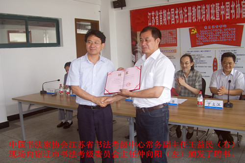 中国书法家协会宿迁书法考级委员会同时成立,中国书法家协会江苏省书法考级中心常务副主任王益民现场向宿迁市书法考级委员会主任仲向阳颁发了聘书。中国书法家协会书法考级中心主任崔志强亲临ylzzcom永利总站线路检测为来自南京、苏州、连云港等12个市的40余名书法爱好者授课,培训班分为初级(1-3级)、中级和高级三种,凡年满十八岁的业余书法爱好者及从事师范教育、校外书法教育的教师、幼师、师专等学校的毕业生、在校生,均可参加中国书法家协会书法考级注册教师培训学习班(有省级书法家协会会员证者可以直接报中级注册教师班)。考试合格者由中国书法家协会按等级颁发《中国书法家协会书法考级注册教师资格证书》。
